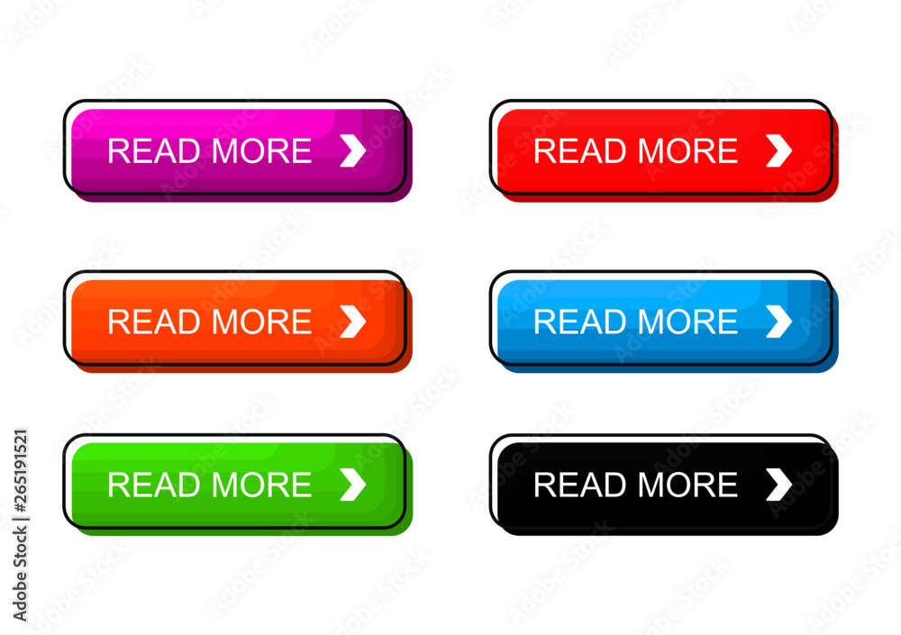 Wall mural read more colorful button set with icons web isolated on white background. vector illustration. - Wall murals Wall mural read more colorful button set with icons web isolated on white background. vector illustration. - Wall murals