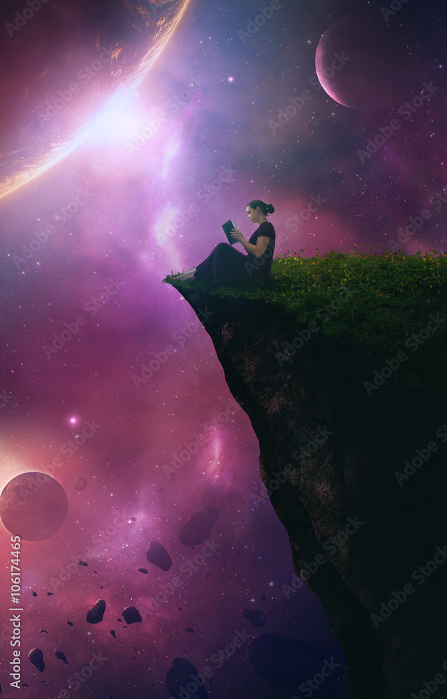 Wall mural reading with night sky - Wall murals Wall mural reading with night sky - Wall murals
