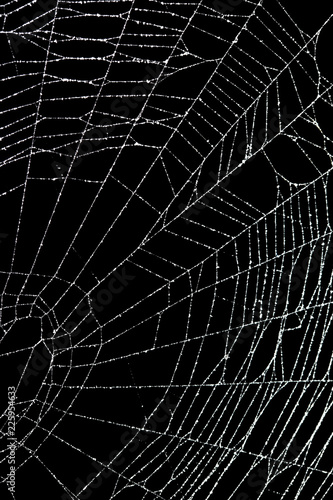 Wall mural real frost covered spider web isolated on black
