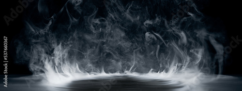 The watermark will not be included on Wall mural.: Real smoke exploding outwards with empty center - dramatic smoke or fog effect for spooky halloween b