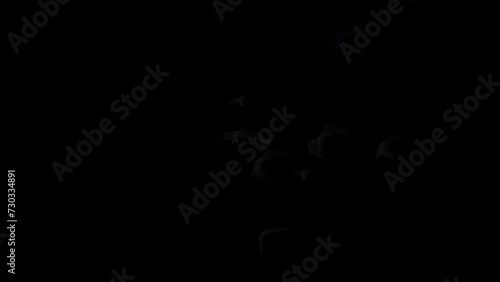 The watermark will not be included on Wall mural.: Realistic bats flying toward viewer out of the dark 4k loop features bats flying erratically appeari