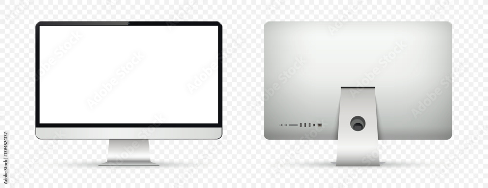 Realistic computer screen mockup - computer monitor front and back view on transparent background - Wall mural
