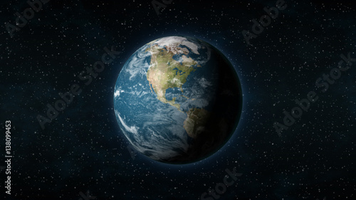 Wall mural : Realistic earth centered on the north american continent, with stars in the background