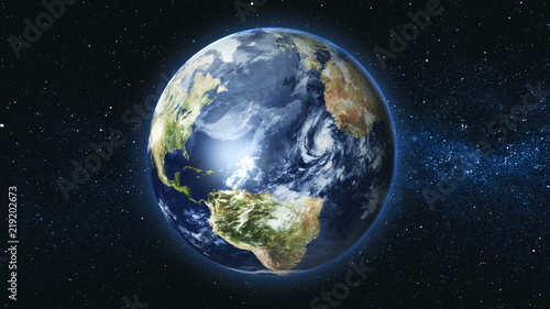 Wall mural realistic earth planet, rotating on its axis in space against the background of the milky way star s