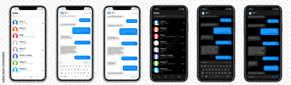 Wall mural realistic mockup app messenger on the screen smartphone in white and black color concept on a transp - Wall murals Wall mural realistic mockup app messenger on the screen smartphone in white and black color concept on a transp - Wall murals