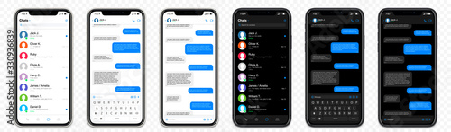 Wall mural : Realistic mockup app messenger on the screen smartphone in white and black color concept on a transp