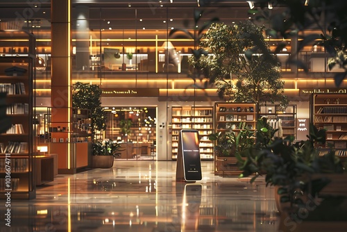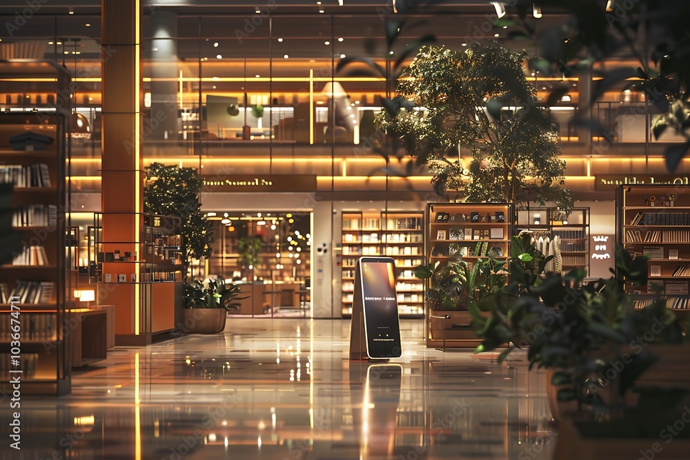 Wall mural : Realistic pov capture showing a hand holding a mobile phone with a blank white screen open to a mess