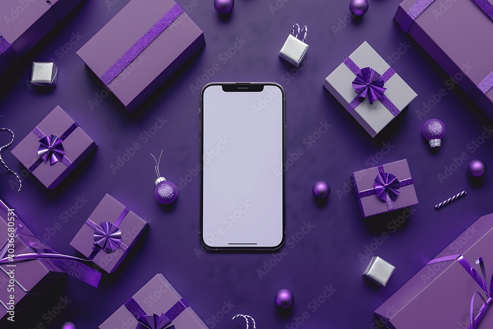The watermark will not be included on Wall mural.: Realistic pov capture showing a hand holding a mobile phone with a blank white screen open to a mess