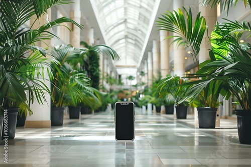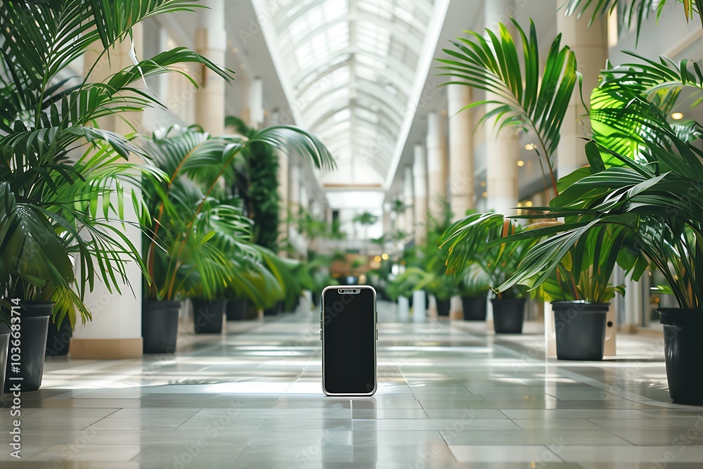 The watermark will not be included on Wall mural.: Realistic pov capture showing a hand holding a mobile phone with a blank white screen open to a mess