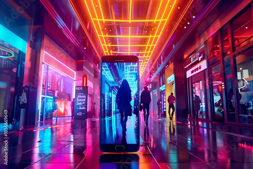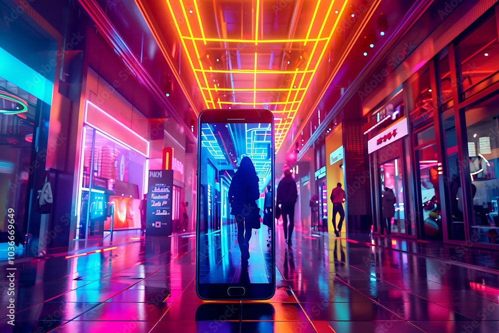 The watermark will not be included on Wall mural.: Realistic pov capture showing a hand holding a mobile phone with a blank white screen open to a mess