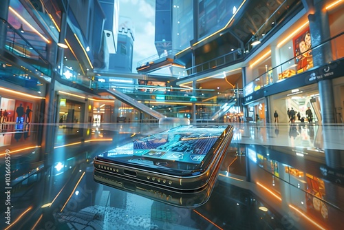 Wall mural : Realistic pov capture showing a hand holding a mobile phone with a blank white screen open to a mess