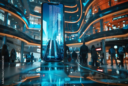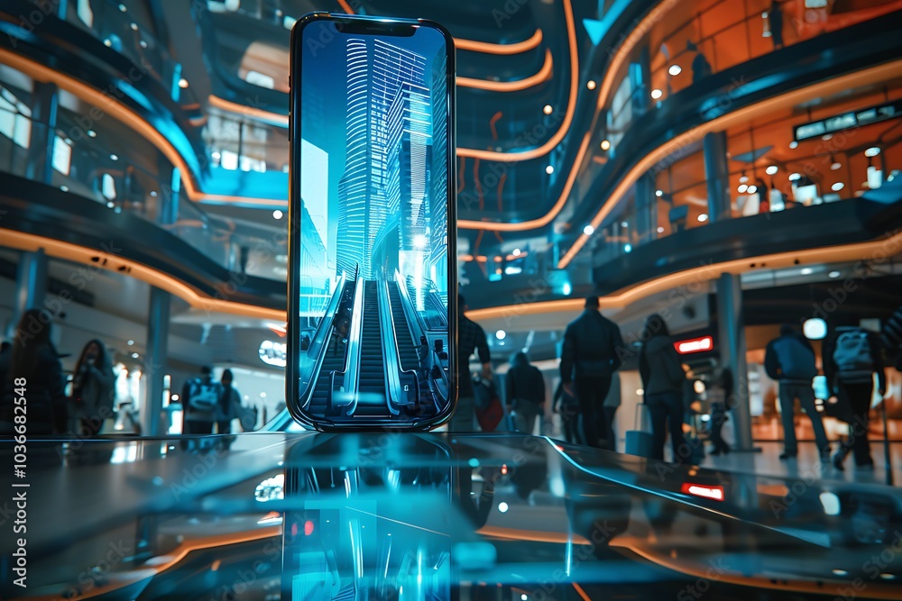 Wall mural : Realistic pov capture showing a hand holding a mobile phone with a blank white screen open to a mess