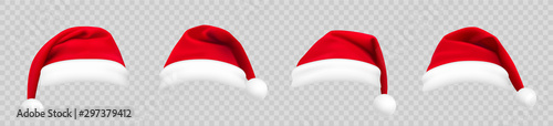The watermark will not be included on Wall mural.: Realistic set of red santa hats - new year red hat - - stock vector -