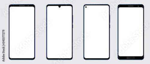 Wall mural : Realistic smartphone mockup front and back sides - mobile phone blank screen, white screen - device ui
