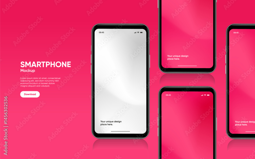 Wall mural realistic smartphone mockup. mobile phone vector with isolated on white background. device front vie - Wall murals Wall mural realistic smartphone mockup. mobile phone vector with isolated on white background. device front vie - Wall murals