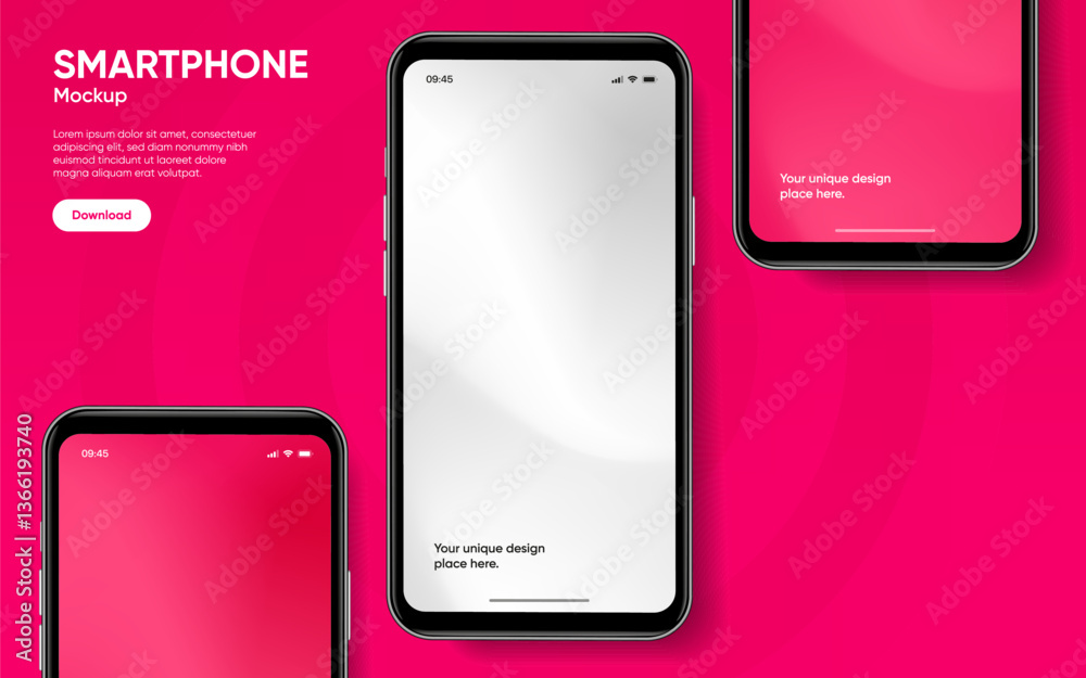 The watermark will not be included on Wall mural.: Realistic smartphone mockup - mobile phone vector with isolated on white background - device front vie