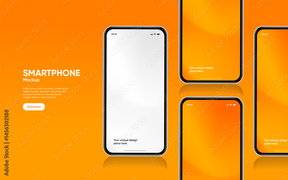 The watermark will not be included on Wall mural.: Realistic smartphone mockup - mobile phone vector with isolated on white background - device front vie