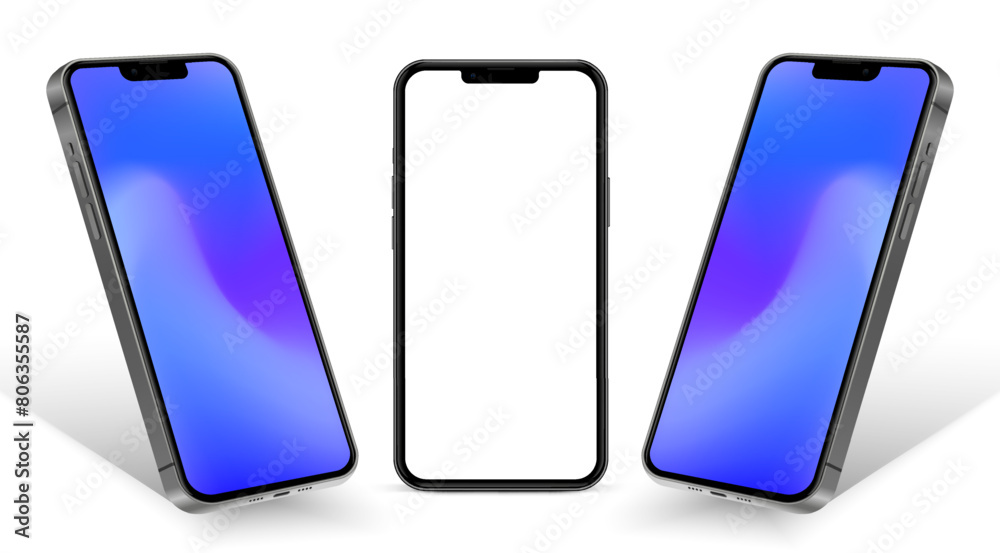 Wall mural realistic smartphone mockup. mobile phone vector with isolated on white background. device front vie