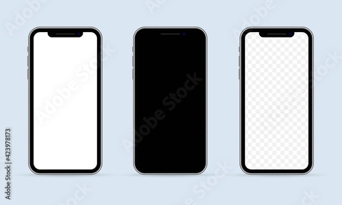 The watermark will not be included on Wall mural.: Realistic smartphone screen mockup set - phone frame with blank display isolated templates - mobile de