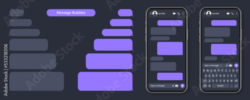 Wall mural realistic smartphone with messaging app. blank sms text frame. conversation chat screen with violet  - Wall murals Wall mural realistic smartphone with messaging app. blank sms text frame. conversation chat screen with violet - Wall murals