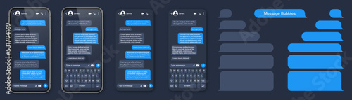Wall mural realistic smartphone with messaging app. sms text frame. conversation chat screen with blue message  - Wall murals Wall mural realistic smartphone with messaging app. sms text frame. conversation chat screen with blue message - Wall murals