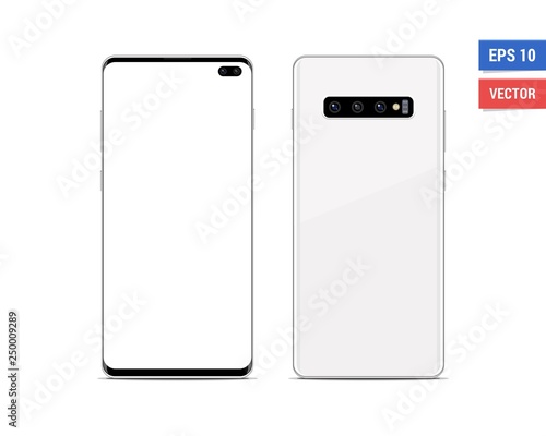 Wall mural : Realistic vector flat mock-up samsung galaxy s10 plus with blank screen isolated on white background