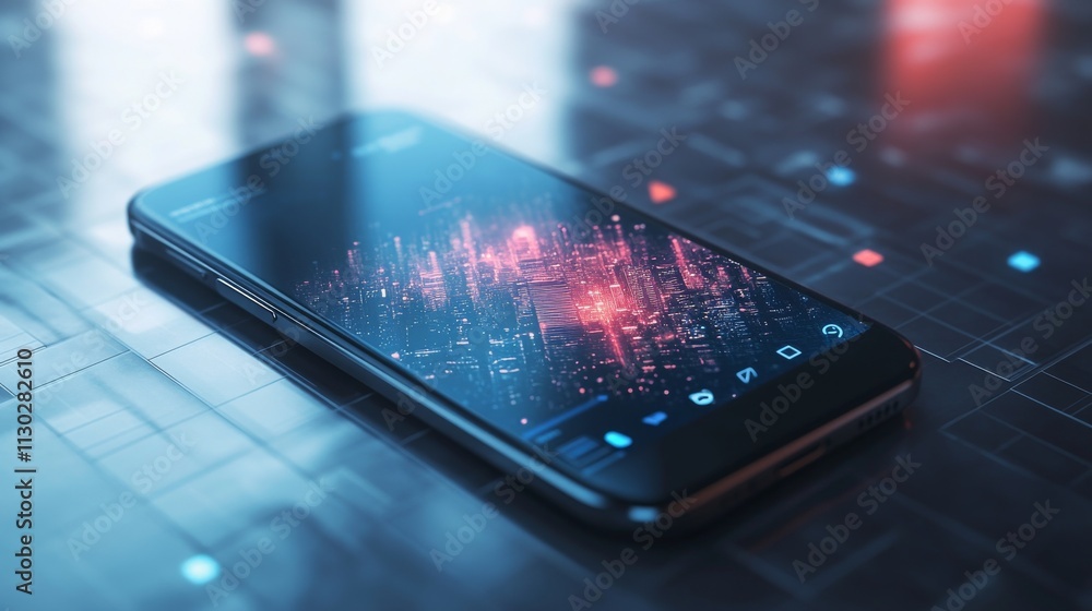 The watermark will not be included on Wall mural.: Realistic vector set of laptop, smartphone and computer with internet of things and smart city devic