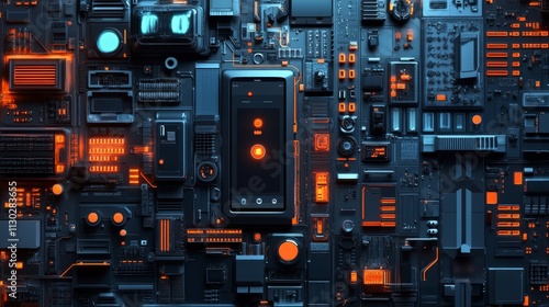 The watermark will not be included on Wall mural.: Realistic vector set of laptop, smartphone and computer with internet of things and smart city devic