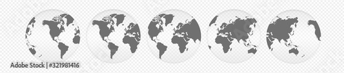 Wall mural : Realistic world map on globe shape with transparent shadow isolated with clipping path - globes of ea