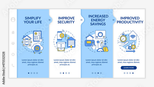 Wall mural : Reasons for home automation white and blue onboarding template - responsive mobile website with linea