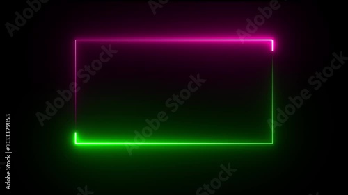Wall mural rectangle picture frame with two tone neon color motion graphic. blue and pink light for overlay ele