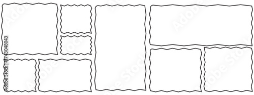 Wall mural rectangle shape frame with zigzag edge. set of zigzag and colorful shapes. cloudy wave curve edge fr