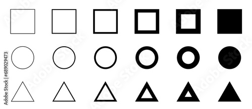Wall mural rectangle square , circle and triangle set from thin to thick line. set of geometric shapes form. ve