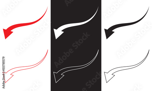 The watermark will not be included on Wall mural.: Red, black and white large forward or pointing solid long arrow icon sketched as vector symbol - vec