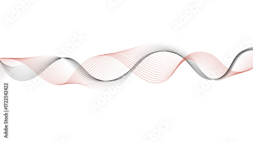 Wall mural : Red abstract background featuring a smooth, flowing wave of thin lines -