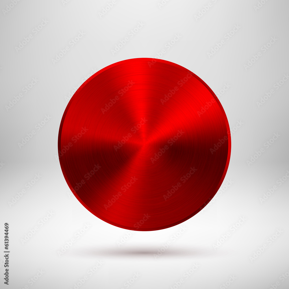 Wall mural red abstract circle button with metal texture - Wall murals Wall mural red abstract circle button with metal texture - Wall murals