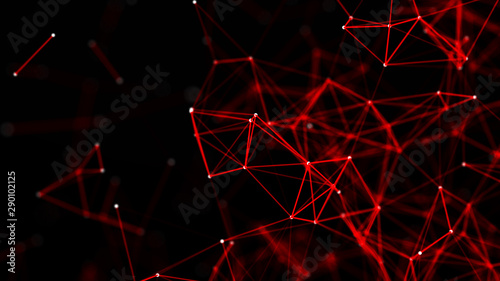 Wall mural red abstract polygonal space with connecting dots and lines. dark background. connection structure.  - Wall murals Wall mural red abstract polygonal space with connecting dots and lines. dark background. connection structure. - Wall murals