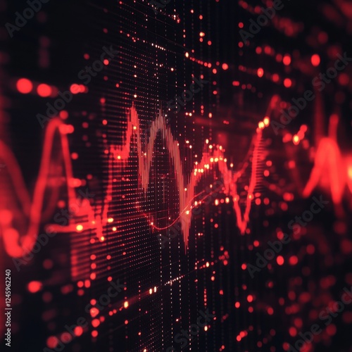 The watermark will not be included on Wall mural.: Red and black digital waveforms pulsing in a dark background with neon light effects and zen papaya