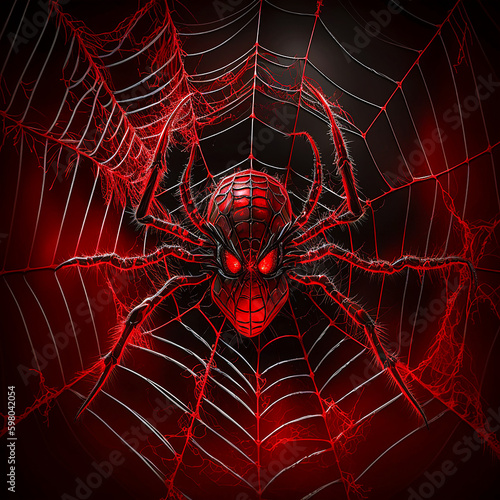 Wall mural red and black spider web. generative ai. a digital painting of a red spider and its web with a black - Wall murals Wall mural red and black spider web. generative ai. a digital painting of a red spider and its web with a black - Wall murals