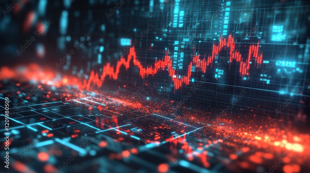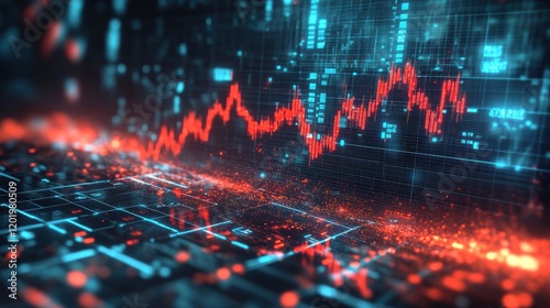 The watermark will not be included on Wall mural.: Red and blue abstract background with a line of binary code symbols in digital style