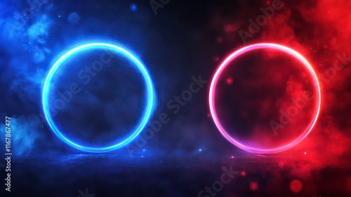 The watermark will not be included on Wall mural.: Red and blue laser light for concert background - dance party event with lazer circle design for dj -