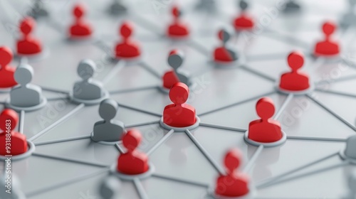 Wall mural : Red and gray avatars intertwining on a white backdrop, illustrating connections in an abstract socia