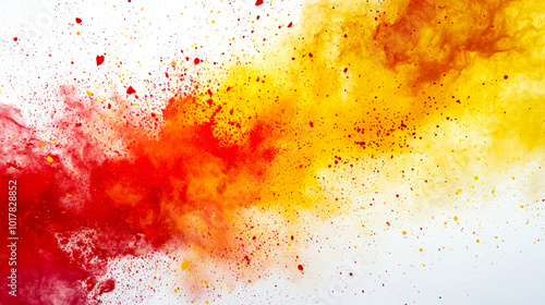 The watermark will not be included on Wall mural.: Red and yellow colors collide with each other on a white background - an explosion of red and yellow