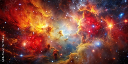 Wall mural red and yellow stellar nursery surrounded by dense nebula in a vibrant cosmic cradle , starforming r - Wall murals Wall mural red and yellow stellar nursery surrounded by dense nebula in a vibrant cosmic cradle , starforming r - Wall murals