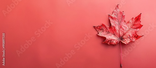 Wall mural red autumn maple leaf against a light red backdrop ideal for copy space image