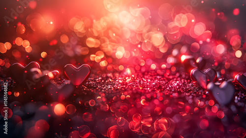 Wall mural red background with many hearts scattered across it. the hearts are small and shiny, and they are sp