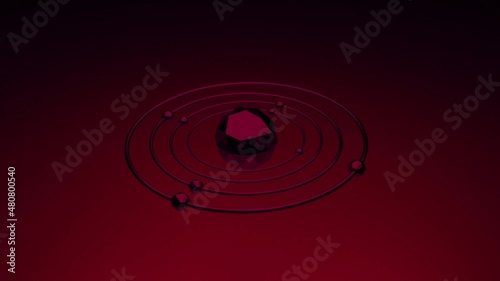 Wall mural : Red background - design - a model of the solar system in abstraction on a calm red background -