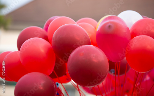 The watermark will not be included on Wall mural.: Red balloons for party in the park - abstract background -
