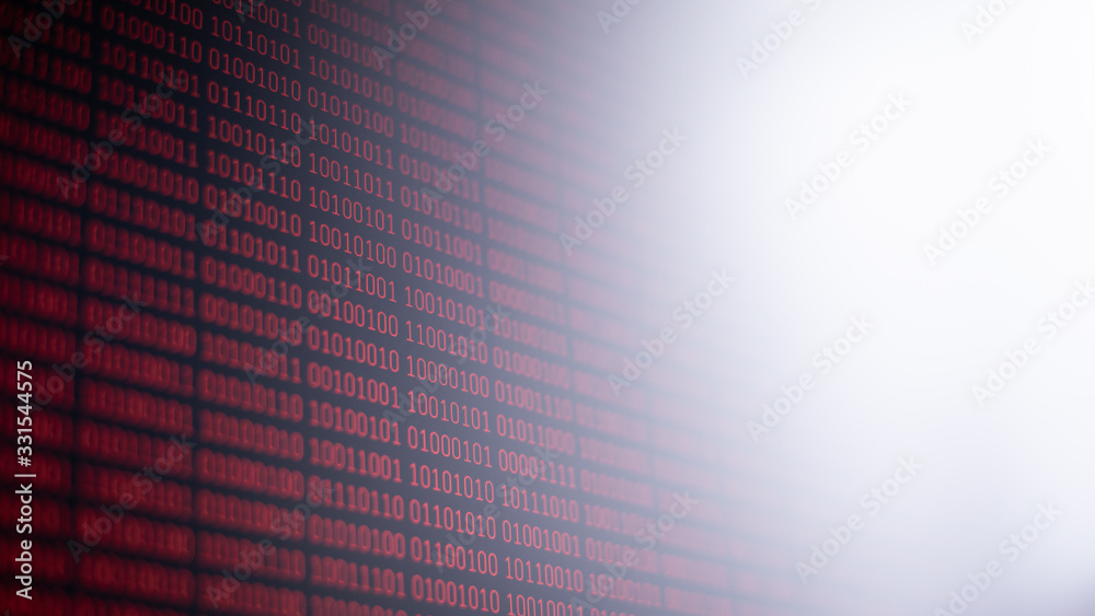 Wall mural red binary code on computer screen with glow for inscription. concept of data, information, computer - Wall murals Wall mural red binary code on computer screen with glow for inscription. concept of data, information, computer - Wall murals