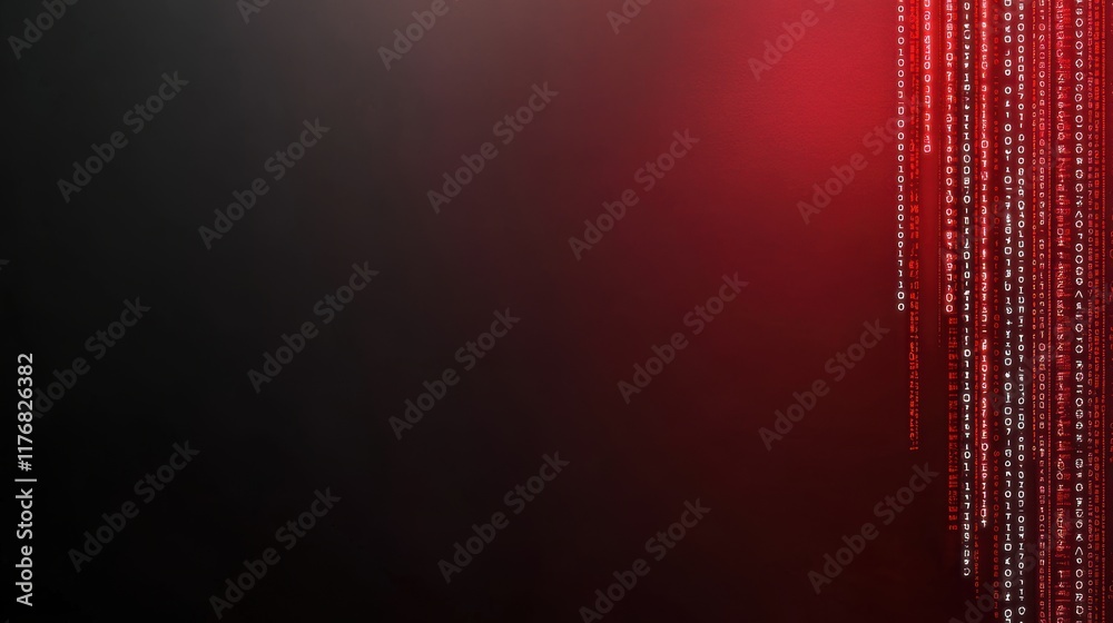 The watermark will not be included on Wall mural.: Red binary code on dark gradient background